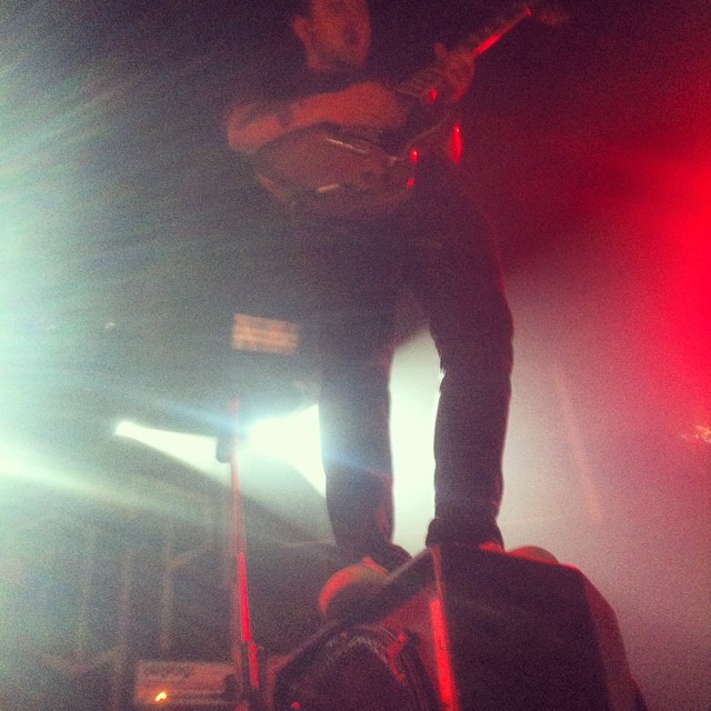 In diesem funktioniert Gitarrist Maciek Ofstad am Ende einen Verstärkerturm zum Podest um, die restliche Saitenfraktion scharrt sich feierlich als okkulte Nerd-Gang herum bis es kein Halten mehr gibt: eine Gitarre hängt über der Bühne und Hjelvik in der ersten Reihe, Ofstad taucht plötzlich als zweiter Drummer auf und seine Kumpanen machen ‚Utrydd dei svake‚ zur feedbacksuchenden Kakophonie – das Eis zum Publikum bricht spät(estens hier) aber furios. Woher Kvelertak ihren Ruf als Livemacht haben ist hiernach absolut keine Frage mehr: schon lange hat man niemanden mehr mit einer derartigen Power und Durchschlagskraft auf einer Bühne wüten gesehen.